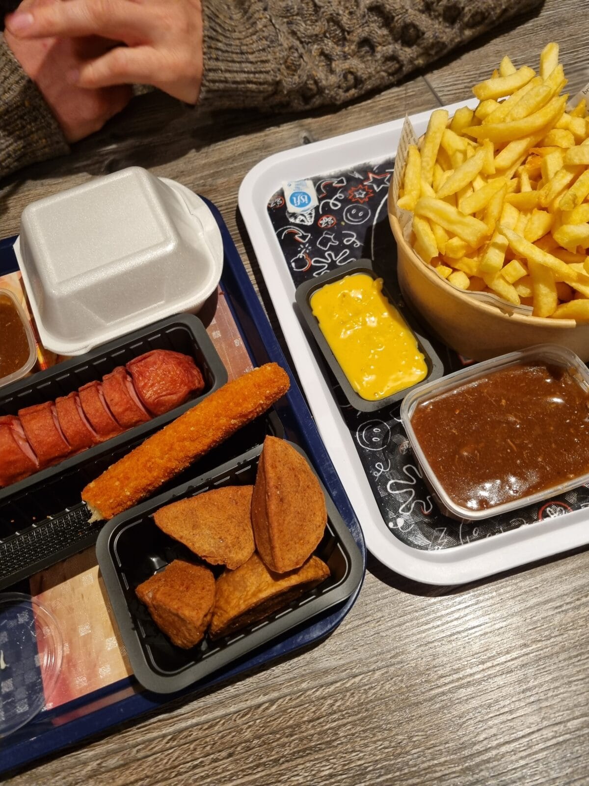 ’s Avonds halen we de kleine op bij oma en omdat hij zo lief vraagt om frietjes te gaan eten in de frituur, geven we toe. Uiteraard eet hij geen frieten en de kipnuggets die hij kiest zijn niet te eten. 🥲