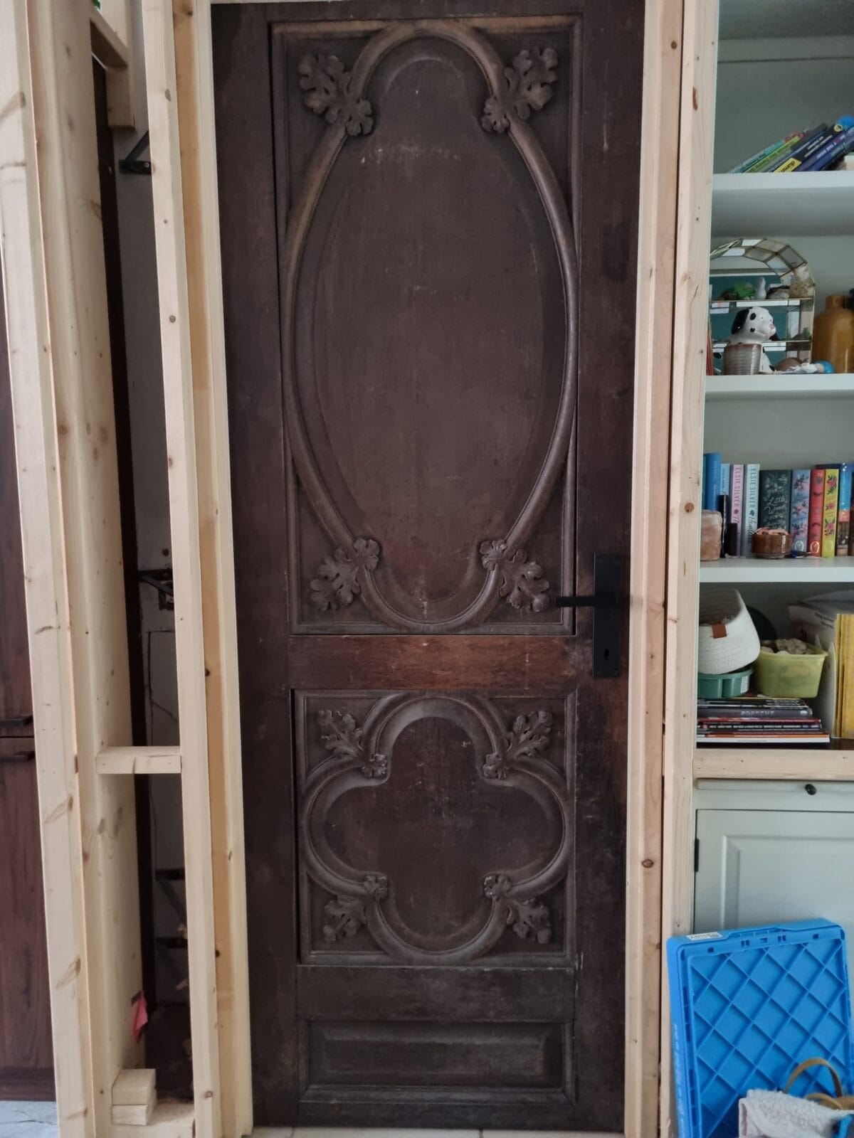 ’s Middags eten we de soep en smoskes en in de namiddag ga ik nog eens op pad met het kind. We gaan naar de kerstafdeling kijken van de doe-het-zelfwinkel. Ik vind het veel minder gezellig dan andere jaren omdat er teveel fel licht is, maar de kleine amuseert zich. Het lief amuseert zich ondertussen ook en zet de deur naar de gang “in” de boekenkast. Ze zal uiteindelijk (ooit) in dezelfde kleur geverfd worden als de boekenkast.